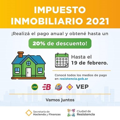 Locales | Impuesto inmobiliario de la ciudad de Resistencia: hasta el viernes 19 hay tiempo para acceder a los descuentos por el pago anual anticipado y de buen contribuyente.