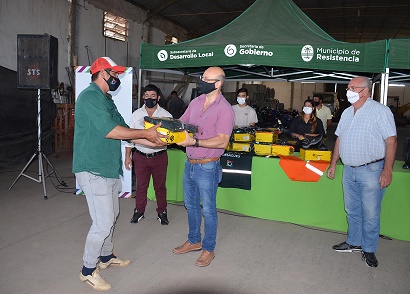 Locales | A través de la Secretaria y Subsecretaria de Servicios Públicos y en conjunto con la Dirección de Saneamiento Nordeste, se entregaron 94 kits de indumentaria que, incluye pantalón, camisa, chomba, botas y borcegos, a los trabajadores de la base operativa de saneamiento hídrico y desagües, ubicada en 25 de mayo 2320. El objetivo es que el personal municipal pueda desempeñar sus tareas cotidianas con la ropa acorde a sus funciones.