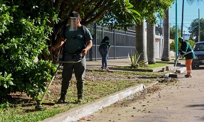 Locales | La Ciudad de Resistencia lleva a cabo varios operativos integrales de limpieza en distintos sectores, en base a lo establecido dentro del Plan Eco Ciudad. En ese sentido, operarios municipales pusieron en condiciones el espacio público de barrios de la zona Oeste mediante tareas de desmalezado y limpieza general.