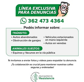 Convocaron a los vecinos a que se comuniquen con la línea de Tránsito al 3624734364, donde unificaron la atención para casos de animales sueltos en la vía pública.