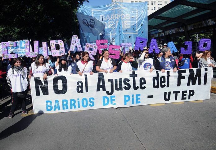 Nacionales | El escenario montado en Avenida de Mayo y 9 de Julio reunió a unas 150 mil personas en uno de los actos. “Le decimos al Fondo que deje de apretar al gobierno, y al gobierno que se apoye en los movimientos populares y el movimiento obrero”, reclamó Esteban “Gringo” Castro.