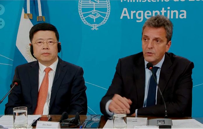 Nacionales | El ministro de Economía dio una conferencia junto al embajador de China, Zou Xiaoli. "Esto mejora la perspectiva de reservas de la Argentina en términos de reservas netas", afirmó Sergio Massa, aprovechando la activación del swap de monedas con ese país.