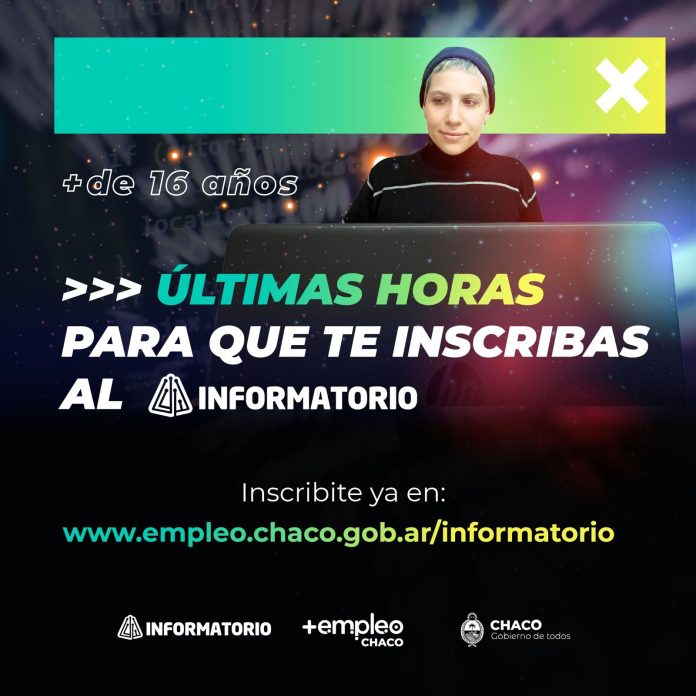 Locales | Las inscripciones se encuentran abiertas hasta las 23:59 de este jueves en www.empleo.chaco.gob.ar/informatorio. La iniciativa es coordinada desde la Subsecretaría de Empleo de la provincia con el acompañamiento estratégico de UTN, UNCAUs, Polo IT Chaco y Globant.