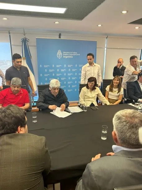 Nacionales | Hugo Moyano firmó el acuerdo en las negociaciones paritarias del gremio de Camioneros con los empresarios del sector. Se acordó un 107% de aumento en cuatro tramos y un bono de $100 mil para fin de año, más adicionales en distintas ramas.