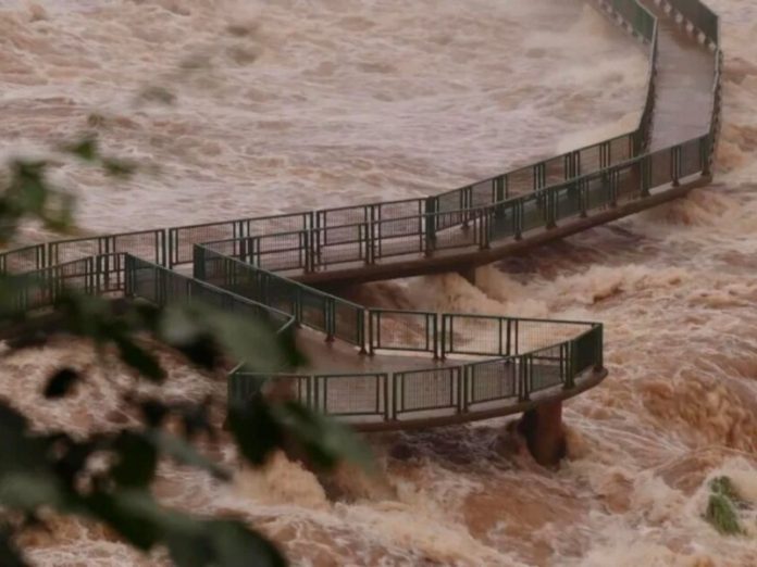 Nacionales | El incremento del caudal del agua se debió a las abundantes precipitaciones que se registraron sobre las altas cuencas del río Iguazú, en territorio brasileño. Allí están instaladas una serie de centrales hidroeléctricas que no tienen capacidad de retención de semejante nivel de agua, motivo por el cual abrieron las compuertas, generando un rápido incremento en la altura del río Iguazú en Misiones.
