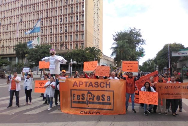Locales | La Asociación de Profesionales, Técnicos y Auxiliares de Salud Pública del Chaco (APTASCH) informó que el paro llevado a cabo este jueves y viernes contó con un “muy fuerte acatamiento en toda la provincia y una concurrida manifestación” frente a la Casa de Gobierno y en los centros sanitarios del interior provincial.