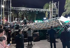 El tradicional festival de música en la plazoleta Cocomarola de la vecina capital correntina, con el cual comenzaron este domingo los festejos por el Día del Chamamé que se celebra este 19, fue interrumpido tras el desplome de una de las pantallas gigantes instaladas en el lugar que cayó sobre los artistas que estaban en escena.