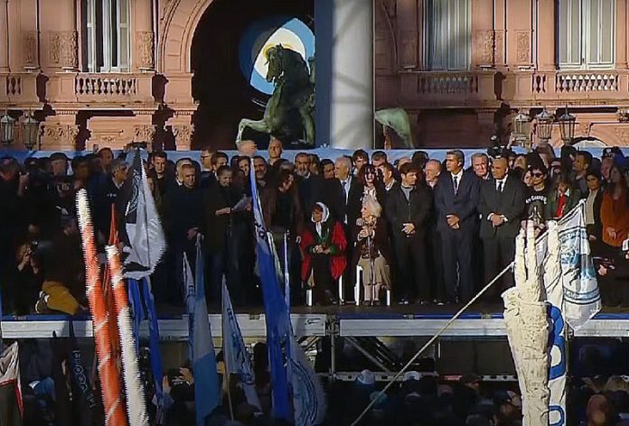 Nacionales | La marcha por Cristina Kirchner en Plaza de Mayo finalizó este viernes con la lectura de un documento que incluyó un llamado a la reflexión de dirigentes y a la unidad nacional, en el marco de una movilización en repudio al atentado sufrido por la Vicepresidenta. Los referentes de distintos sectores de la sociedad encabezaron el cierre de la manifestación con la lectura de una misiva. "No es inocente ni gratuita la legitimación de discursos extremos", marcaron.