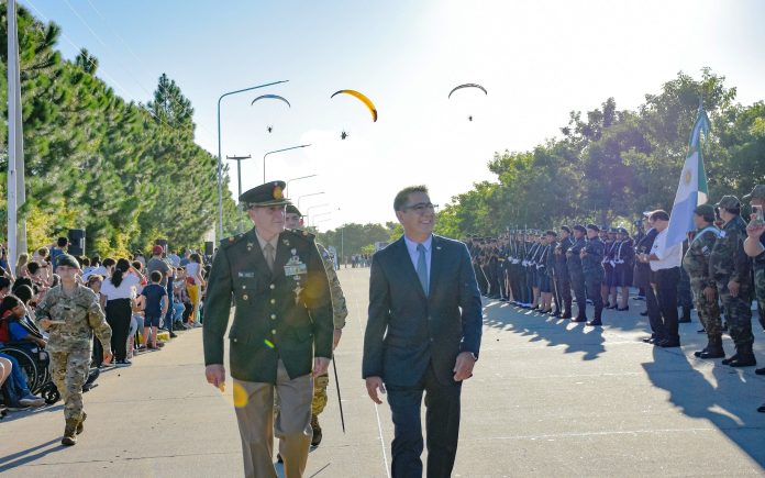 Locales | El intendente de Resistencia, Gustavo Martínez, encabezó el acto por el Día del Veterano y de los Caídos en la Guerra de Malvinas en el Parque de la Democracia, donde se llevó a cabo un desfile cívico militar para homenajear a los héroes del Atlántico Sur a 41 años de su gesta.