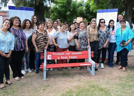 Locales | La fundación Mujeres Chaqueñas Solidarias (Muchas) emplazó, en Sáenz Peña, un Banco Rojo para dar visibilidad y conciencia acerca de la problemática social de la violencia contra la mujer. El emotivo acto fue encabezado por la presidenta Elida Cuesta y las integrantes Flavia Quiroz, Natalia Vega y Libia Címbaro.
