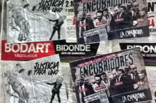 Nacionales | La agrupación política La Cámpora dio a conocer hoy una serie de afiches con los que empapelaron el Centro porteño, en el marco del Día Nacional de la Memoria por la Verdad y la Justicia, denunciando la apropiación irregular de la empresa Papel Prensa por parte de los diarios La Nación y Clarín promovida por el presidente de facto Jorge Rafael Videla durante la última dictadura.