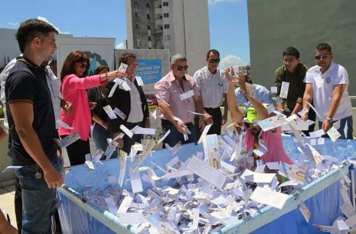 Locales | La presidenta de la Federación Económica del Chaco (FECHACO), Silvia Reyero junto a dirigentes de toda la provincia realizaron este sábado, el cierre de la promoción del bono “Comprá en tu Ciudad”, en una transmisión en vivo. En esta oportunidad, los ganadores del sorteo final de dos autos 0 KM fueron para las localidades de Gancedo y San Bernardo, resultando premiados Nicolás Sosa (Cámara de Comercio de Gancedo) y Norma Beatriz Echeverría (Cámara de Comercio del Departamento O´Higgins).