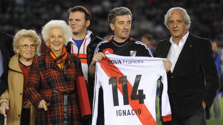 Nacionales | En la previa del encuentro ante Tigre, los dirigente "Millonarios" le entregaron una plaqueta y una camiseta con el número 114."Estoy emocionado, este homenaje no es para mí sino para la búsqueda de las abuelas", dijo