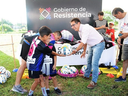 Locales | El intendente, Gustavo Martínez, entregó indumentaria y elementos deportivos al Club Deportivo Los Dogos, una institución barrial y social ubicada en avenida Chaco al 2700 que alberga actividades recreativas para más de 100 chicos.