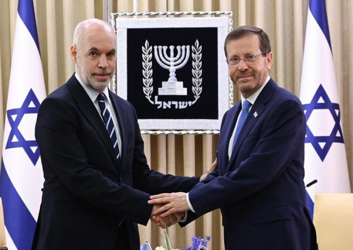 Nacionales | El jefe de Gobierno porteño, Horacio Rodríguez Larreta, se reunió este martes con Isaac Herzog, presidente de Israel, quien lo recibió en la residencia presidencial Beit HaNassi. Durante el encuentro, además de destacar la necesidad de apoyo político para salir de la inflación, Herzog le agradeció a Rodríguez Larreta la colaboración de la Policía de la Ciudad en la investigación del caso del avión venezolano con tripulación iraní retenido en la Argentina.