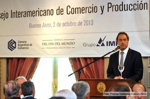Nacionales | El gobernador Daniel Scioli se ubicó en "un virtuoso círculo celeste y blanco en favor de la producción y el trabajo", al exponer ante más de 500 empresarios provinciales y nacionales, representantes de diversos sectores y embajadores.