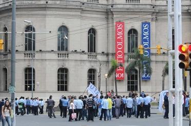 Nacionales | Los choferes de transporte urbano protestaron de manera sorpresiva y provocaron destrozos en el Palacio 6 de Julio. También fueron agredidos dos móviles de televisión.
