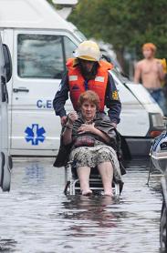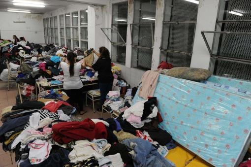 Nacionales | Los habitantes de barrios periféricos de La Plata afectados por el temporal pernoctaban en centros de evacuados o se abastecían en ellos de comida y ropa, para volver a sus casas aún anegadas para custodiarlas durante la noche.