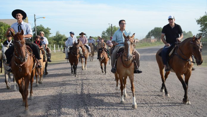 Locales | Por quinta vez consecutiva, el intendente de Resistencia, Gustavo Martínez, participó de la cabalgata que se realiza los días 22 de cada mes para pedir por la paz a Santa Rita de Casia. El trayecto inició en la Fundación de Equinoterapia "San Jorge" y se extendió hasta la parroquia "San José" de Puerto Tirol.