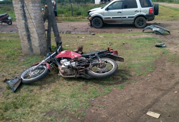 Locales | En la mañana de este domingo ocurrió un grave siniestro vial entre una motocicleta y una camioneta en la esquina de calles Di Campli y Mendoza de Villa Angela, Allí chocaron dos vehículos y el conductor del rodado de menor porte resultó con graves lesiones siendo trasladado de urgencia a Presidencia Roque Sáenz Peña.