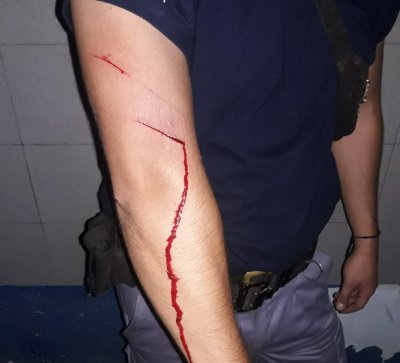 Locales | Varias unidades policiales de Fontana debieron intervenir cerca de la medianoche de viernes en una riña callejera en el barrio Independencia. Un joven de 20 los atacó con un cuchillo y provocó varios cortes superficiales a uno de los agentes. Está detenido.