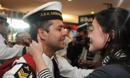 Nacionales | Los primeros 285 tripulantes de la Fragata Libertad, retenida en Ghana a partir de la acción de un fondo buitre, llegaron esta madrugada a Ezeiza, a bordo de un vuelo contratado por el Gobierno Nacional.