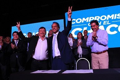 Locales | La fórmula presidencial del Frente Para la Victoria Daniel Scioli y Calos Zannini hicieron manifiesto su compromiso con la continuidad del crecimiento de la provincia del Chaco y su inclusión en la agenda de desarrollo para Argentina, por medio de la firma de un acta de acuerdo. “Ahora tenemos el desafío de avanzar sobre lo que tenemos para adelante, y que con Domingo Peppo vamos a llevar adelante”, afirmó Scioli en este sentido.