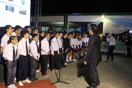 Sobre el nuevo playón deportivo se desarrolló el acto que tuvo como propósito la celebración de los 75 años de la Escuela de Educación Primaria N° 422 de Barranqueras, y la inauguración de un nuevo espacio para la realización de actividad física.