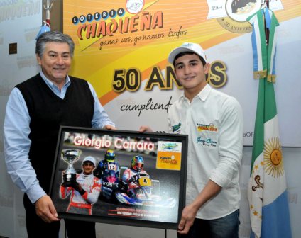 El joven piloto oriundo de Las Breñas, Giorgio Carrara, partirá el próximo 7 de septiembre hacia Italia para disputar el Campeonato Mundial de Karting CIK-FIA, que se disputará en la ciudad de Lecce, con el apoyo oficial de Lotería Chaqueña.