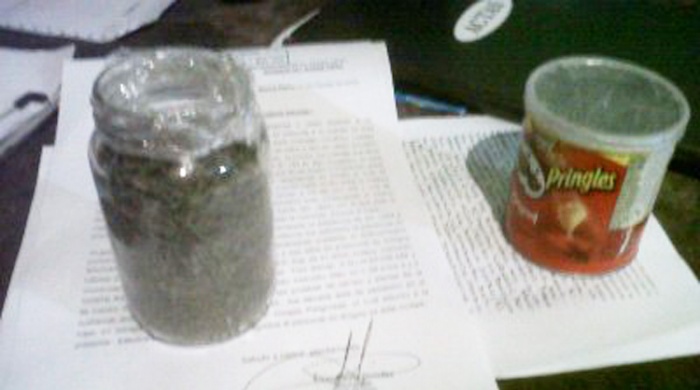 Locales | Efectivos de la División 911 de la ciudad Termal incautaron el martes un kilo y medio de marihuana que un vecino encontró en su terreno del barrio Sagrado Corazón. Estaba entre las malezas, en cajas de cartón y dos frascos.
