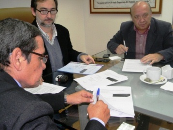 El interventor y el subinterventor de Secheep, Daniel San Cristóbal y Gerardo Escobar rubricaron este viernes, en la refaccionada sede de la Gerencia del Área Metropolitana (GAM) un convenio de modernización tecnológica con el presidente de Ecom: