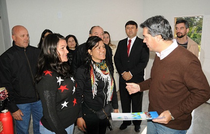 Locales | El gobernador Jorge Capitanich entregó este jueves 20 viviendas en Laguna Limpia, de las 53 que se construirán en la localidad, además de mobiliario y elementos para instituciones de Desarrollo Social. En la oportunidad también recorrió el avance de obras en Ciervo Petiso (viviendas y polideportivo) y en Colonias Unidas (pavimento urbano) donde constató el funcionamiento del hospital.