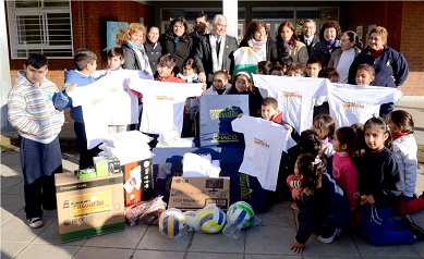 Locales | Autoridades de Lotería Chaqueña hicieron una donación de banderas de mástil, elementos deportivos y una computadora de escritorio completa a la comunidad educativa de la Escuela Primaria 1056 del barrio Don Santiago de Resistencia.