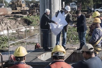 Locales | El ministro de Desarrollo Urbano y Territorial Gustavo Martínez, acompañado del jefe de Proyectos Externos de SAMEEP Ricardo Requena recorrió a orillas del río Paraná, el avance del muelle de toma de agua cruda del Segundo Acueducto del Interior.
