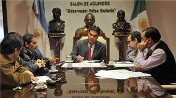 Locales | El ministro de Educación, Sergio Soto realizó hoy la primera entrega de 300 uniformes a porteros de escuelas de distintos localidades de la provincia y además la propuesta del manual de misiones y funciones para este sector, en un multitudinario acto en la sede de la Unión del Personal Civil de la Provincia (UPCP).