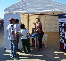 Locales | El Ministerio de Gobierno realizó una campaña de información y asesoramiento sobre violencia de género y adicciones en el predio del Parque Urbano Tiro Federal de Resistencia. La actividad, coordinada por la Subsecretaría de Asuntos Institucionales, incluye la entrega de folletería y atención de consultas de la ciudadanía.