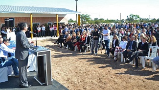 Locales | En Hermoso Campo, el gobernador Jorge Capitanich inauguró la primera etapa del nuevo edificio de la Unidad Educativa Privada (UEP) N° 152 “Nuestra Señora de Aparecida” y comprometió un aporte de dos millones de pesos para obras de ampliación del establecimiento. Anunció además la pavimentación de las cuadras lindantes y rubricó dos convenios, uno para la construcción de una cancha de piso flotante en el Club Sportivo Argentino y otro para culminar las obras de la Terminal de Ómnibus.