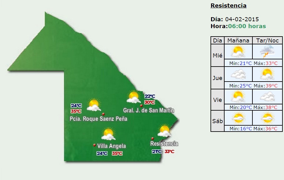 Luego de una jornada de intenso calor vivida ayer con una temperatura que alcanzó los 40 grados, Resistencia despertó esta mañana con precipitaciones y tormenta eléctrica. La inclemencia del tiempo comenzó a las 6 de la mañana y hasta el momento no mostró mejoramientos. Se espera una temperatura de 36 grados.