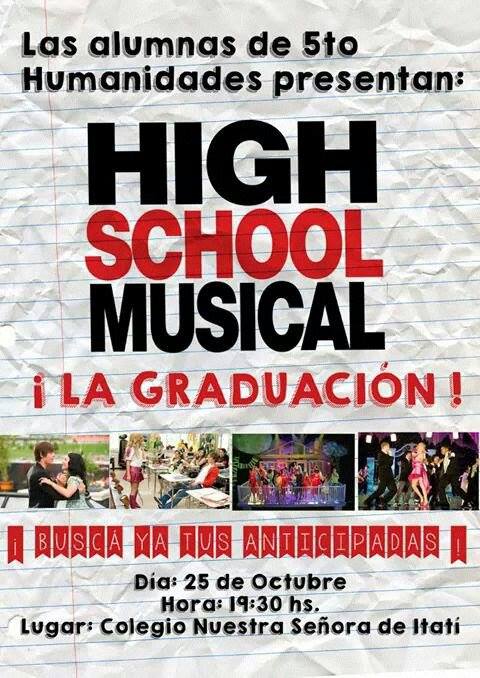 Locales | El próximo sábado 25 de octubre, a las 19:30 hs. la obra High School Musical, ¡La graduación! subirá a escena en el salón de actos del Colegio "Ntra. Sra. de Itatí", avenida Wilde 161. Las entradas podrán adquirse el mismo día en puerta.