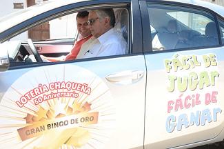 Locales | Julio Roldán, un chofer de ómnibus de larga distancia oriundo de Hermoso Campo, retiró el automóvil cero kilómetro que había ganado durante el primer sorteo del Gran Bingo de Oro de Lotería Chaqueña, que también puso en juego un auto Peugeot 408 y miles de pesos en premios.