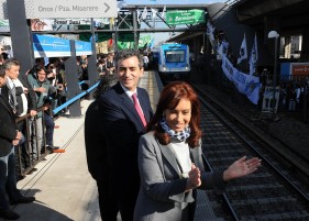 Locales | La presidenta de la Nación, presentó hoy, junto con el ministro de transporte, Florencio Randazzo siete nuevas formaciones para la línea Sarmiento. Las nuevas formaciones transportan a más de 150 mil personas.