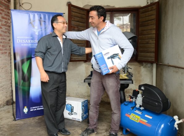 Locales | En otro aporte para la promoción de la economía solidaria como instrumento del empleo autogestionado, el Ministerio de Desarrollo Social entregó herramientas a emprendedores de Resistencia. Uno de los adjudicatarios fue Marcelo Gómez, con domicilio en Villa Don Enrique, que recibió equipamiento para la instalación de un taller para la producción y venta de rejas, portones y ventanas.