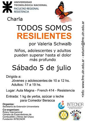 La jornada se desarrollará el sábado 5 de julio en el Aula Magna de la Universidad Tecnológica del Nordeste (UTN), a cargo de Valeria Schwald quien asevera que “los niños, adolescentes y adultos pueden superar hasta el dolor más profundo”.