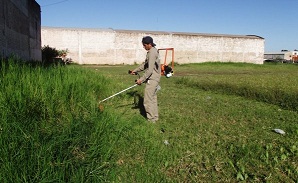 Locales | Cooperativistas del Programa Argentina Trabaja realizan tareas de desmalezamiento para mejorar las canchas de fútbol y propiciar la práctica deportiva en el Barrio América.
