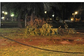 Locales | Un violento temporal con granizo y fuertes vientos se precipitó sobre la cabecera del departamento de General Donovan en la noche de este martes provocando serios inconvenientes en los servicios públicos afectando principalmente al tendido de alta tensión en el acceso. Debieron ser evacuadas quince familias y la crecida de un arroyo próximo asecha a cinco barrios.