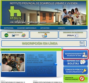 Locales | Desde el Instituto Provincial de Desarrollo Urbano y Vivienda (IPDUV) se informa que desde el mes de febrero hasta julio todos aquellos postulantes inscriptos en los planes de viviendas vigentes deberán realizar su re-empadronamiento vía on line a través del sitio oficial del organismo -ipduv.chaco.gov.ar -.