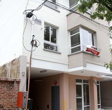 Locales | La obra del edificio Beatriz tiene en la vereda la torre de bajada de luz expuesta al paso de los transeúntes, sin ningún tipo de cerco o vallado protector.