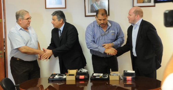 Locales | El ministro de Salud Pública, Antonio Morante, junto al subsecretario de Seguridad Vial, Juan Manuel Chapo, hizo entrega de equipos de alcoholímetros a los intendentes de Fontana, Antonio Rodas y de Hermoso Campo, Aníbal Requena.