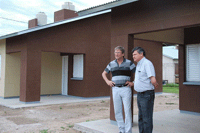 Locales | El presidente del Instituto Provincial de Desarrollo Urbano y Vivienda –IPDUV-, Domingo Peppo, supervisó el importante ritmo de ejecución de obra que presentan unidades habitacionales del Plan Techo Digno en la ciudad de Barraqueras, donde en pocas semanas estarán terminadas las primeras 14 viviendas sobre un paquete de 40 que lleva adelante la empresa Tekchaco.