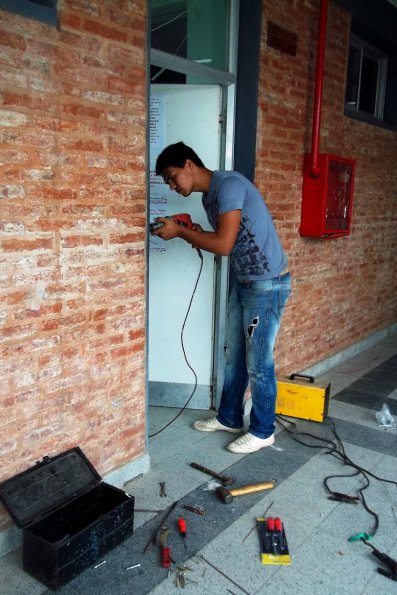 El subsecretario de Empleo, Sebastián Lifton, visitó en Resistencia escuelas en las que jóvenes del programa oficial de empleo realizan tareas de mantenimiento y reparación mobiliarios.